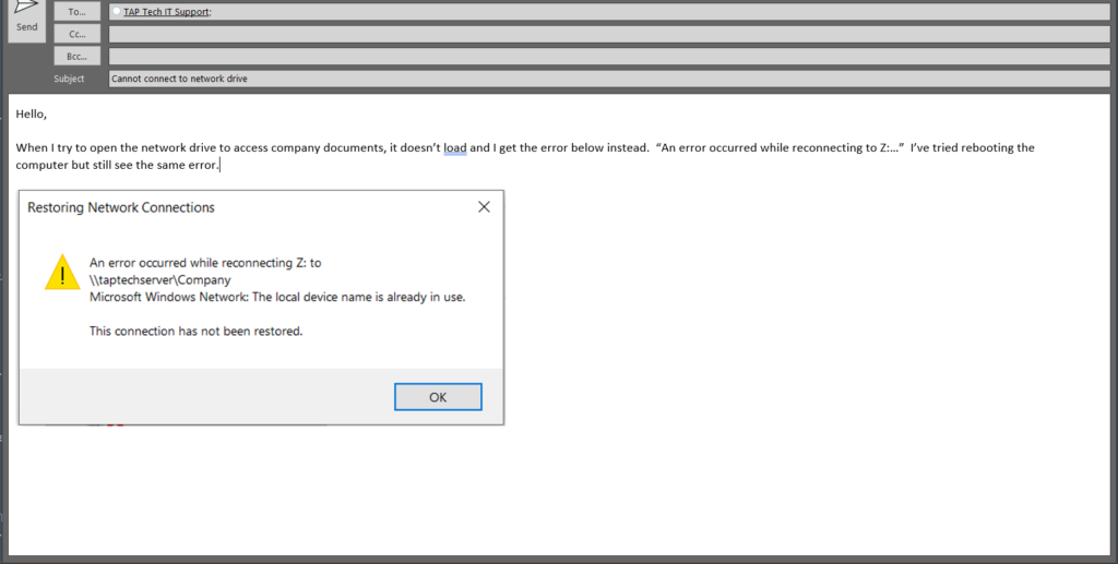 Here’s an example of what we would love to see in support request emails. Of course, we realize that not every situation can come with a corresponding screen shot. In any case, the more information you can provide about the issue, the better we can assist you.
